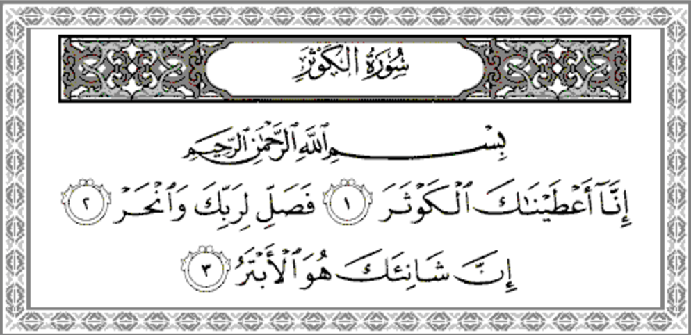 Au nom d’Allah, le Tout Miséricordieux, le Très Miséricordieux.Nous t’avons certes, accordé l’Abondance.
