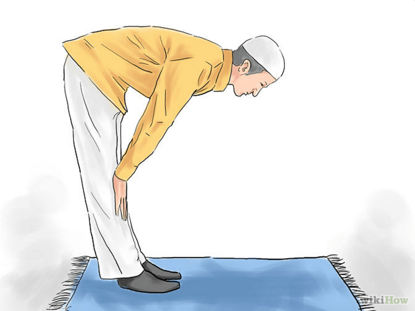 - Inclinez-vous de telle façon que votre dos et votre cou soient parallèles au sol (en formulant un angle de 90 degrés avec vos jambes), en disant “Allahu Akbar”. Veillez également à poser vos mains sur vos genoux. Répétez ensuite « Soubhâna Rabbiya-l-Adhîm« . En français, «Gloire à mon Seigneur le Très Grand» trois fois de suite.