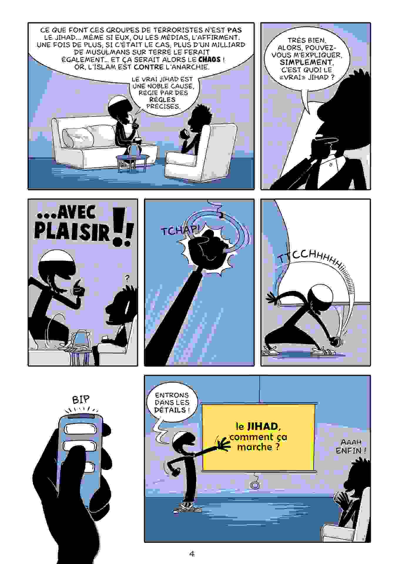 Dans cette nouvelle BD, en cours de financement par une campagne de crowdfunding lancée le 20 novembre dernier, l’idée sera de répondre à des questions d’actualité et souvent entendues comme : Qu’est ce que le djihad ? l’Etat Islamique ? Est-ce que vous vous désolidarisez des attentats ?